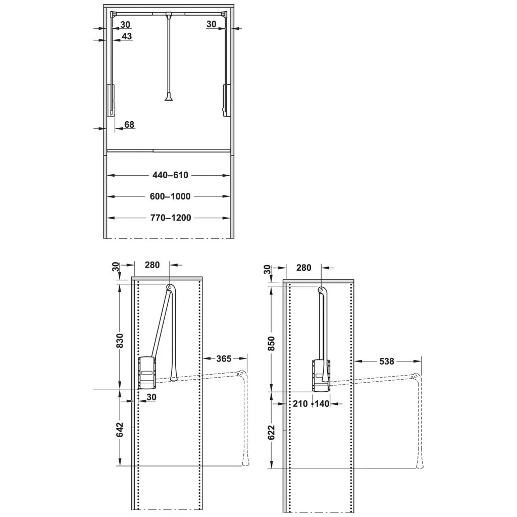 | For internal cabinet width: | 440 - 610 mm 600 - 1000 mm 770 - 1200 mm |
