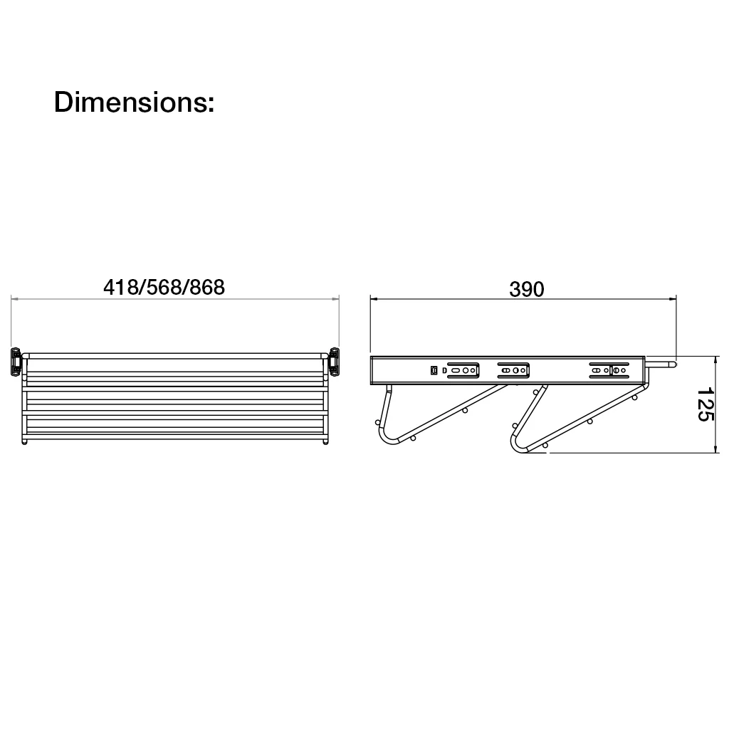 | Basket Dimensions (D x W): | 125 x 418 mm 125 x 568 mm 125 x 868 mm |